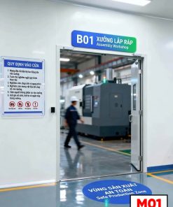 Biển phòng ban nhà máy – biển cửa xưởng sản xuất là giải pháp nhận diện khu vực hiệu quả trong các nhà máy, khu công nghiệp. Sản phẩm giúp định danh rõ ràng từng bộ phận như: xưởng lắp ráp, khu gia công, khu kiểm định… từ đó tối ưu quy trình vận hành và nâng cao hình ảnh doanh nghiệp.